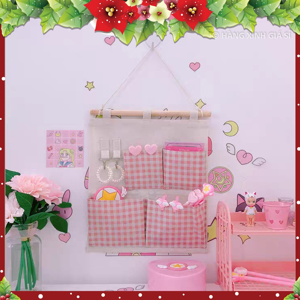 ] Túi treo tường Canvas 7 ngăn và 2 móc treo tiện ích