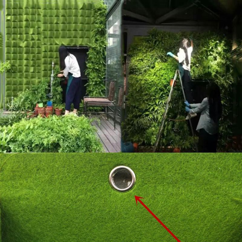 Vườn thẳng đứng dạng treo, thích hợp dùng để trồng cây, trồng hoa, trồng rau. Túi sản xuất bằng vải không dệt chuyên dụng (vải địa kĩ thuật), có khả năng chịu được nắng, mưa, ngâm nước tốt, đươc may cực kỳ chắc chắn, khuy hợp kim độ bền cực cao, dễ dàng lắp đặt ở mọi vị trí.