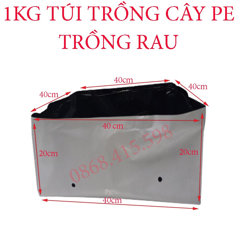 Giới thiệu túi trồng cây,trồng rau, trồng hoa cảnh,ươm cây con kích thước cao 20cm (khi bung ra), Đáy Vuông 40x40cm 1kg 19-20 cái
