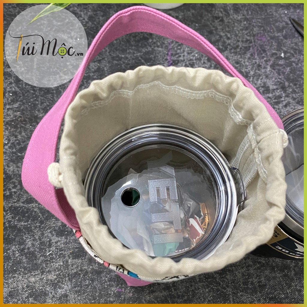 Túi vải bố Canvas đựng bình nước/ly giữ nhiệt màu HỒNG xinh xắn