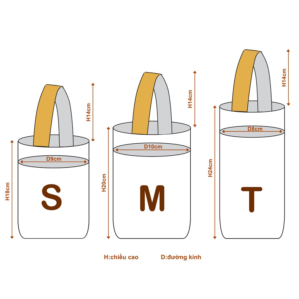 Shop Túi Mộc có nhận ĐẶT & MAY túi theo size bình/ly của bạn nếu size túi trên không vừa nhé.