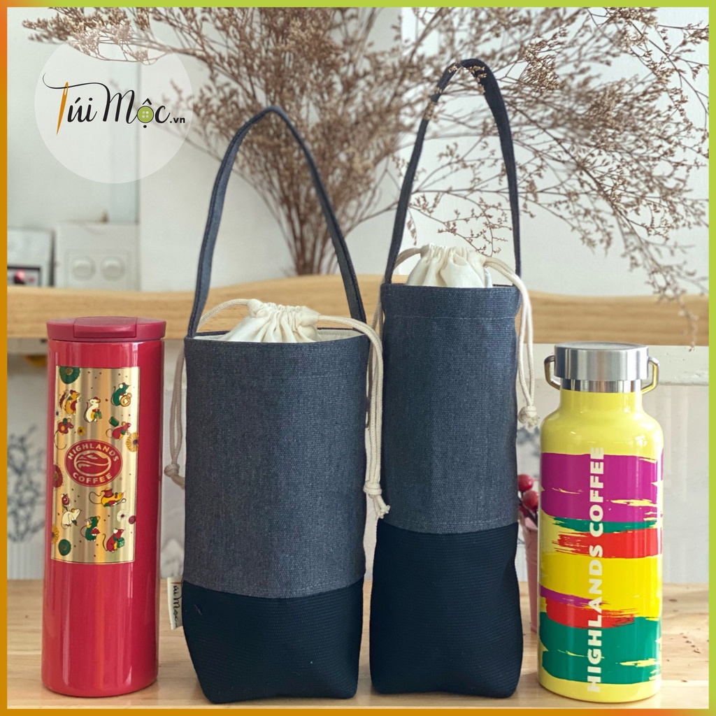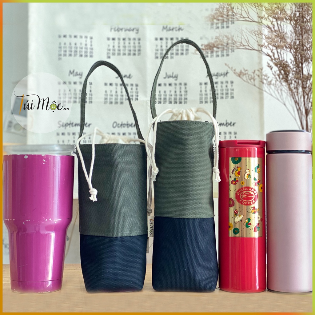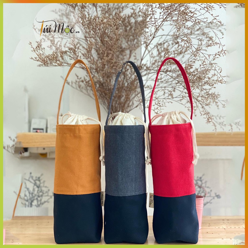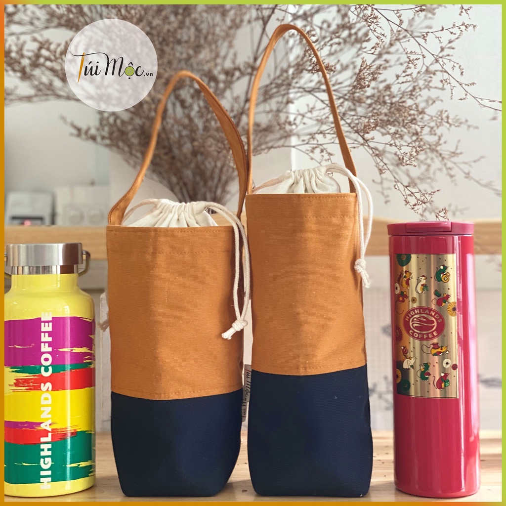 TÚI VẢI BỐ CANVAS PHỐI MÀU DÙNG ĐỰNG BÌNH NƯỚC/LY GIỮ NHIỆT/BÌNH GIỮ NHIỆT - HÀNG TỰ MAY HANDMADE 100%