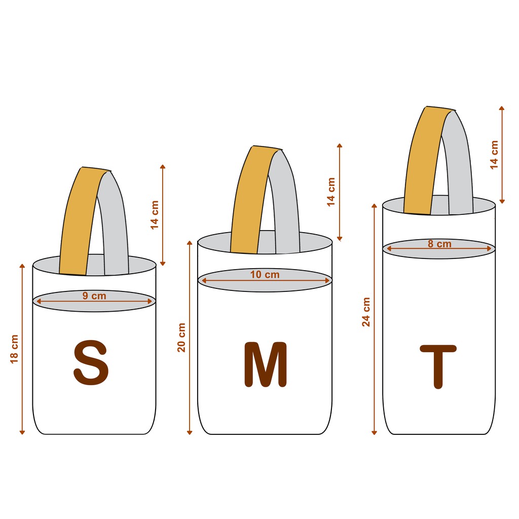 Shop Túi Mộc có nhận ĐẶT & MAY túi theo size bình/ly của bạn nếu size túi trên không vừa nhé.