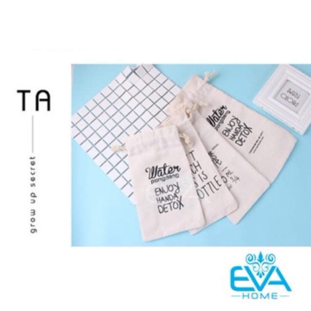 Túi Vải Canvas In Chữ Dây Rút Dùng Đựng Bình Nước 500 ml - 600 ml - 1000 ml