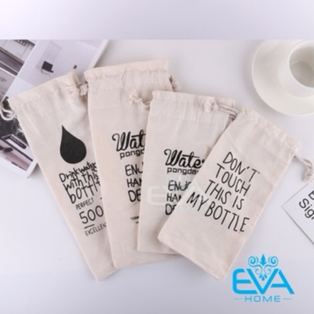 Nhà cửa & Đời sống > Bộ đồ bàn ăn > Bình nước & phụ kiện || Túi Vải Canvas In Chữ Dây Rút Dùng Đựng Bình Nước 500 ml - 600 ml - 1000 mlCòn hàng