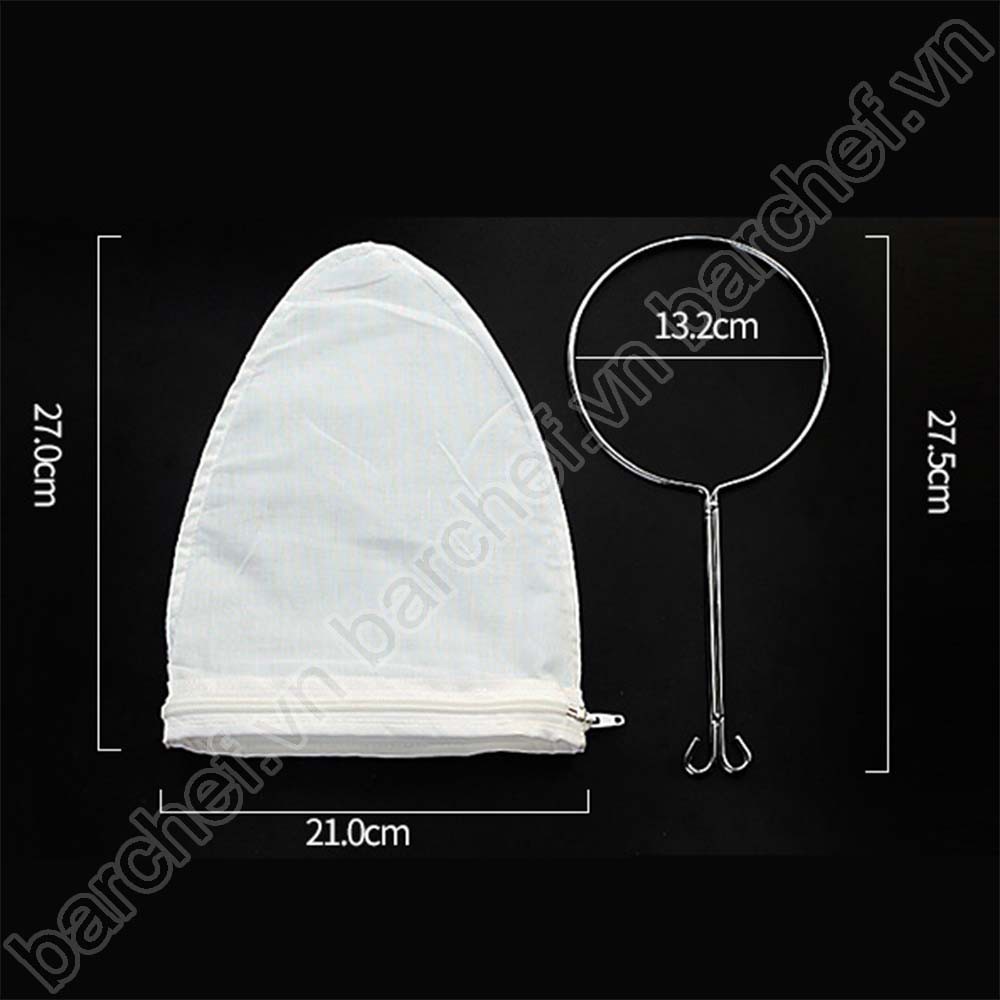 Sản phẩm gồm 2 bộ phận: vòng thép không gỉ + túi lọc bằng vải (có thể dùng riêng) -