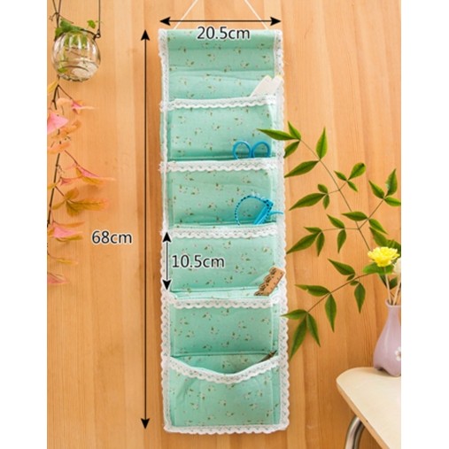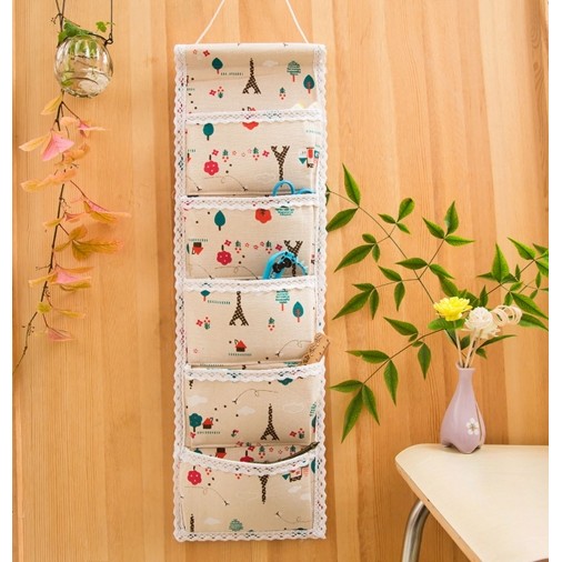 Túi vải treo 5 ngăn dọc viền ren vintage với họa tiết tháp Elfen, mẫu hoa nhí nền xanh nhã nhặn và mẫu hình mèo dễ thương.Túi vừa để đồ cho căn phòng thêm gọn gàng, vừa là túi treo để trang trí phòng.