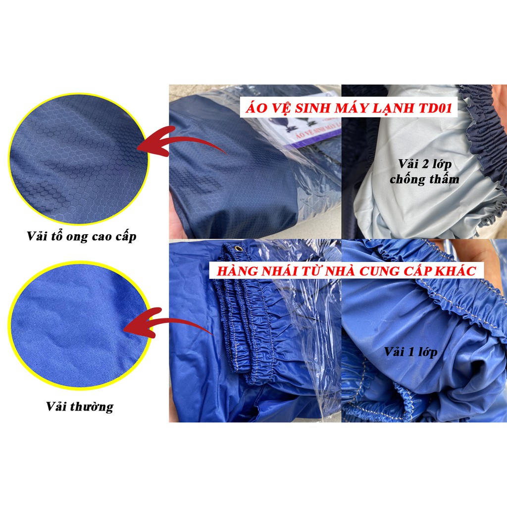 Giới thiệu Túi vệ sinh máy lạnh treo tường âm trần vải dù chống thấm tổ ong cao cấp, áo vệ sinh máy lạnh chuyên nghiệp TD01