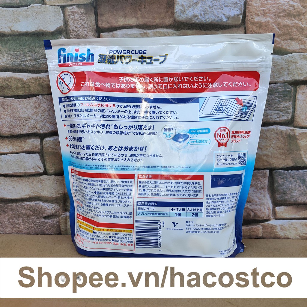Túi Viên Rửa Chén Bát Finish Nhật Bản Power Cube 150 viên chuyên dùng cho mát rửa chén sạch đến 99.9%