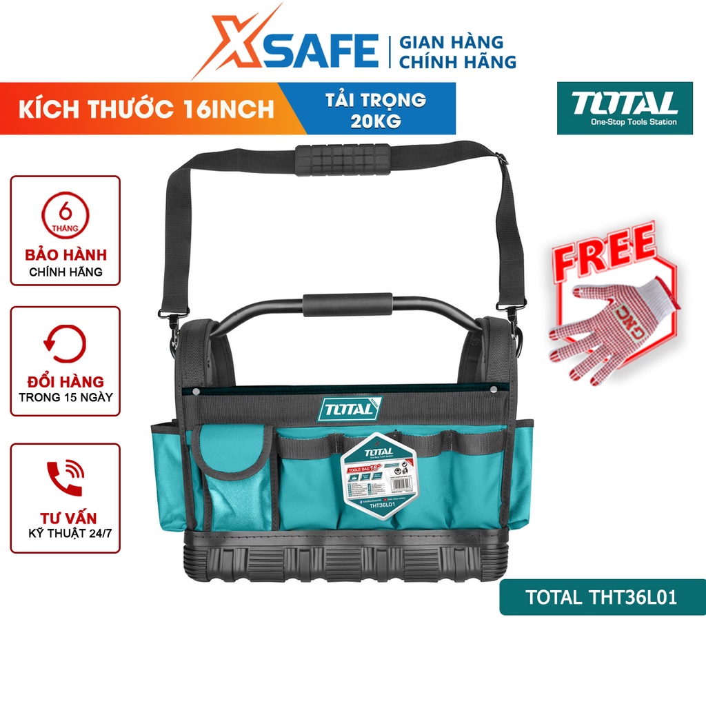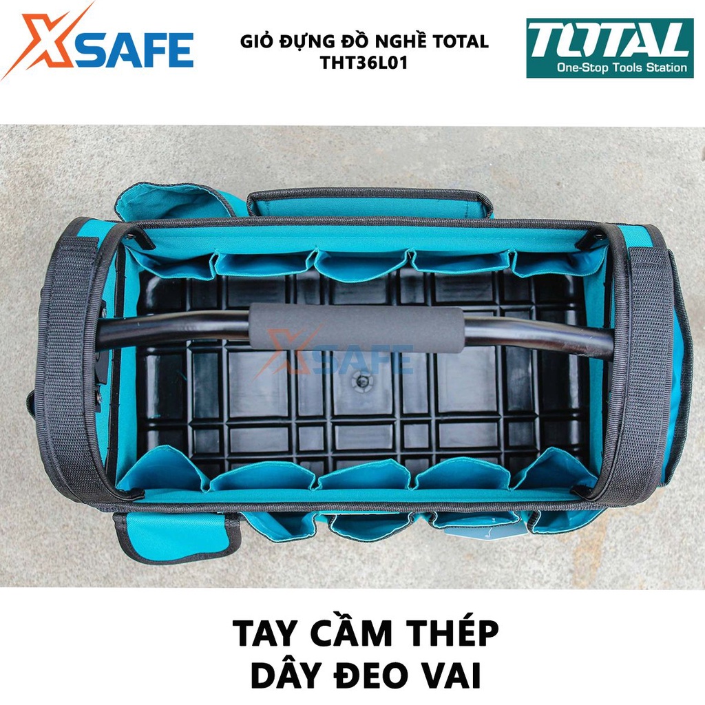 Giới thiệu Túi xách dụng cụ TOTAL THT36L01 Giỏ đựng đồ nghề kích thước 16", túi đựng dụng cụ 21 ngăn, đế nhựa chống mài mòn - XSÀFE