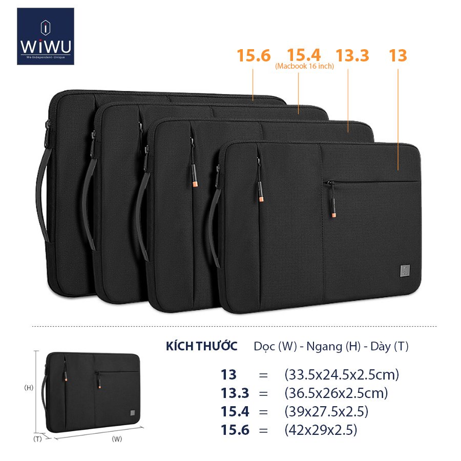 - Túi Wiwu Alpha Double Layer Sleeve kích thước: 15.6 (41x29x4.5cm)