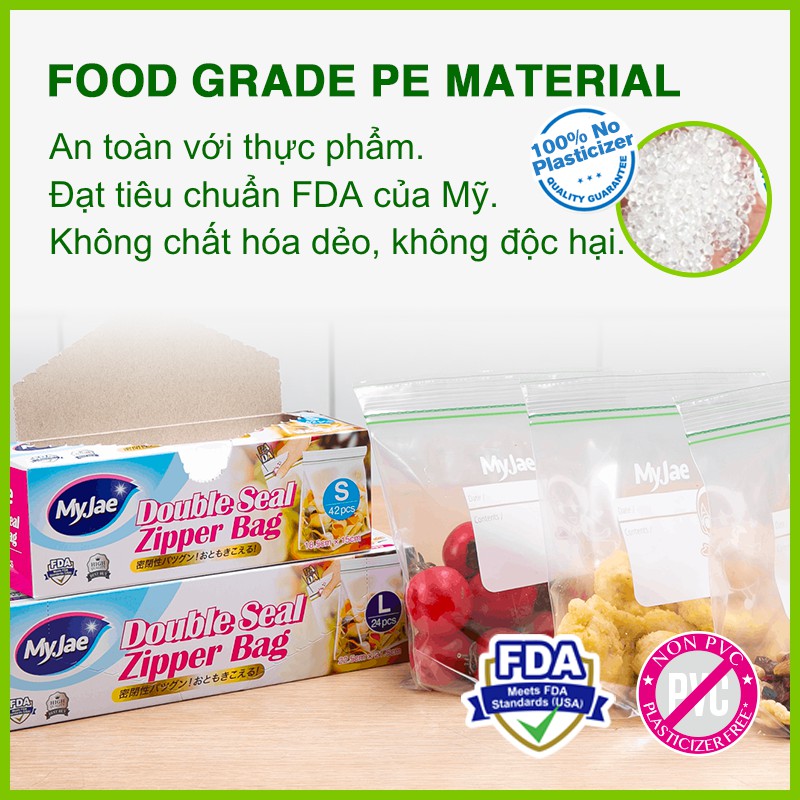 - Chất liệu PE an toàn thực phẩm, đạt tiêu chuẩn FDA của Mỹ, không chất hóa dẻo, không độc hại.