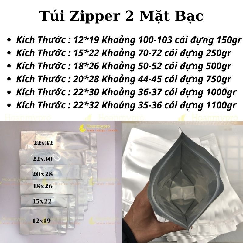 Giới thiệu Túi zip bạc 1kg túi zipper đáy đứng 2 mặt bạc đựng thực phẩm TuiGoiHangHoanMypro