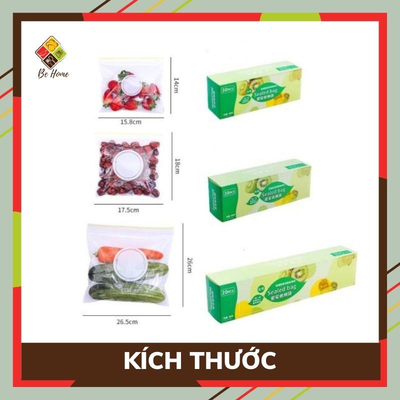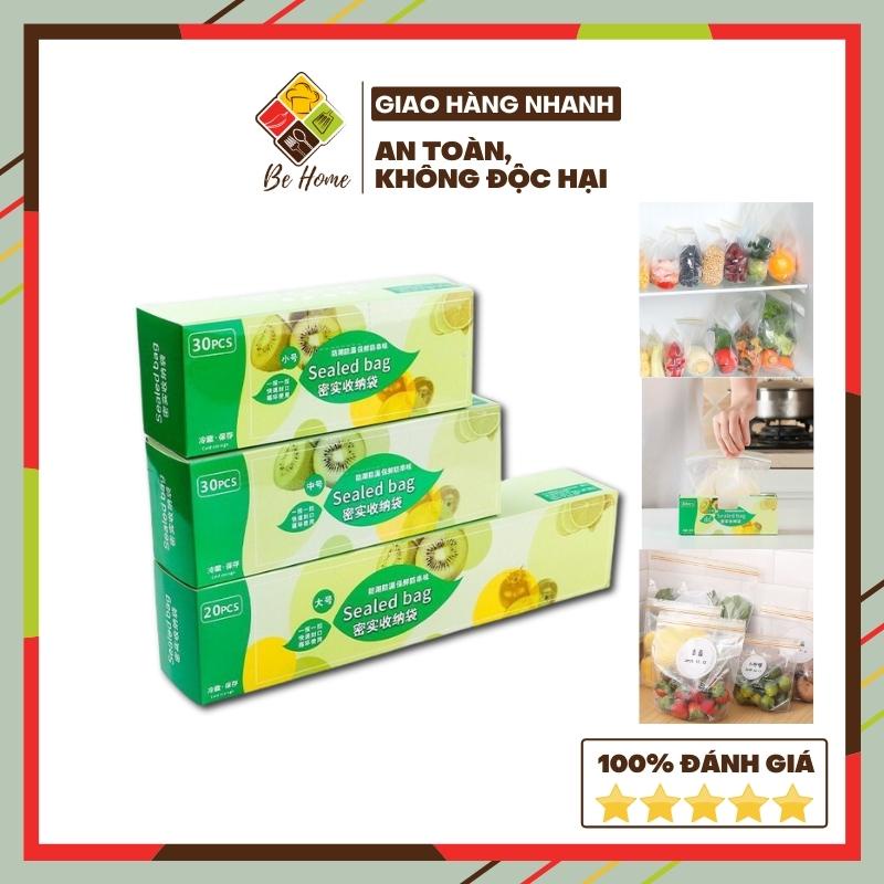 Túi zip Đựng Thực Phẩm BEHOME 3 Size Sealed Bag Thông Minh An Toàn Dùng Được Lò Vi Sóng [Combo 3 Hộp Gồm 80 Túi Zip]
