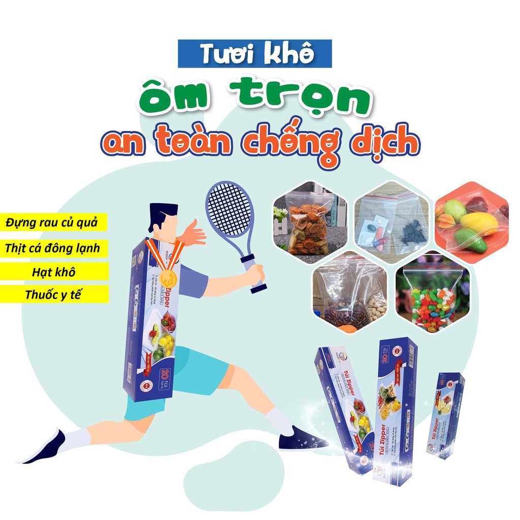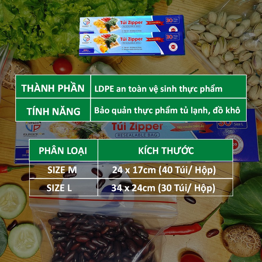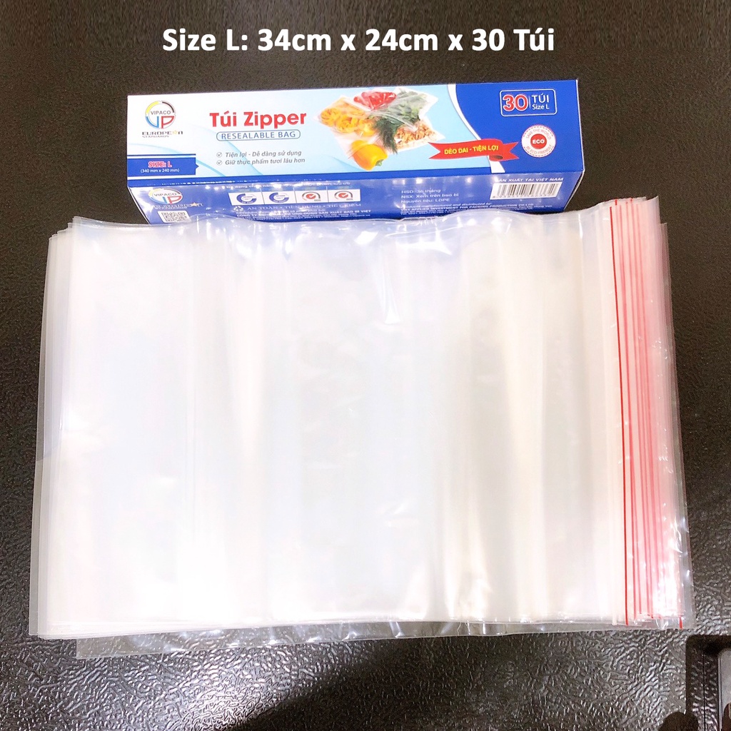 Túi zip đựng thực phẩm đang được nhiều người tiêu dùng hiện nay ưu tiên lựa chọn. Túi có thể sử dụng để đựng hầu hết các loại thực phẩm, từ thịt, cá, rau củ hay các loại nước dùng, đồ ăn nấu sẵn, giúp chứa đựng và bảo quản thực phẩm được tươi lâu hơn, chống không khí hay đổ nước ra ngoài.- Kích thước