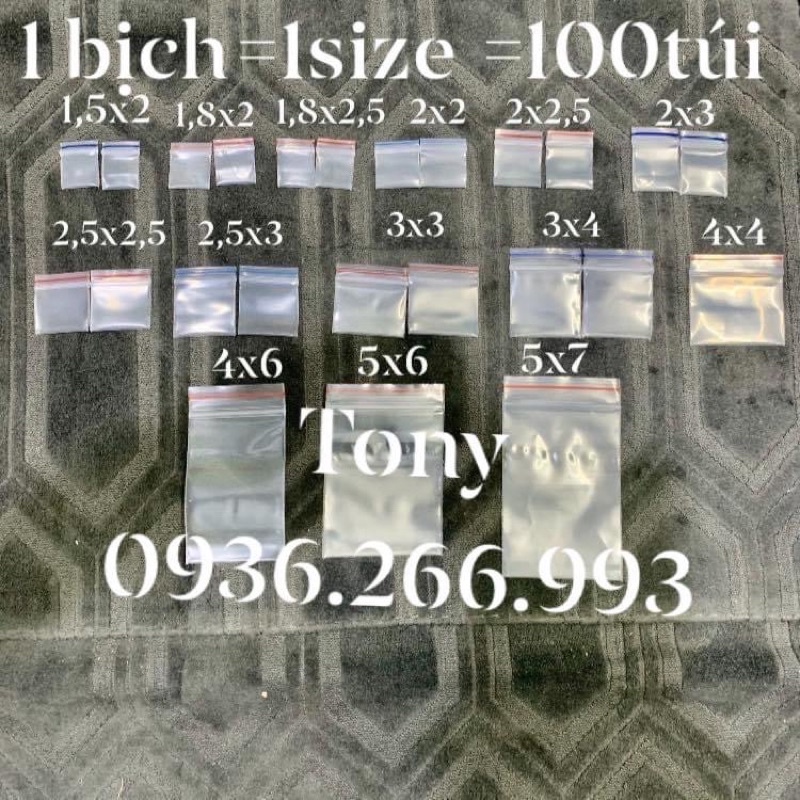 1bịch 100 túi 1sizesize từ 1,5x2 đến 4x4