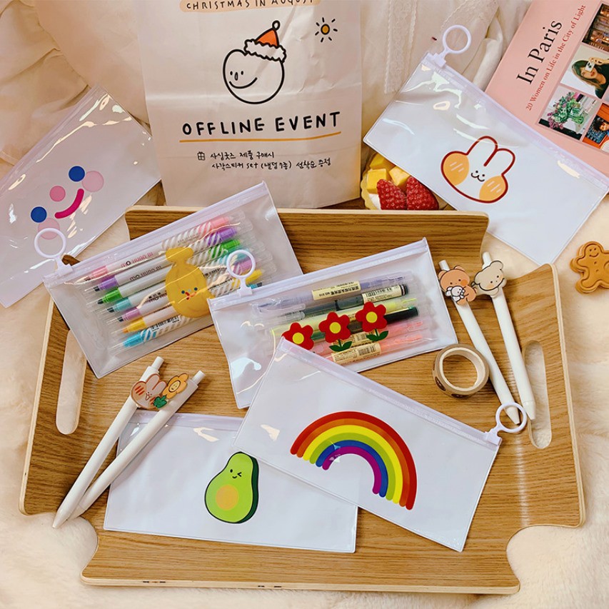Túi zip nhỏ xinh đựng dụng cụ học tập thật gọn gàng và tiện lợi nè.Màu trắng, nhiều họa tiết dễ thương.