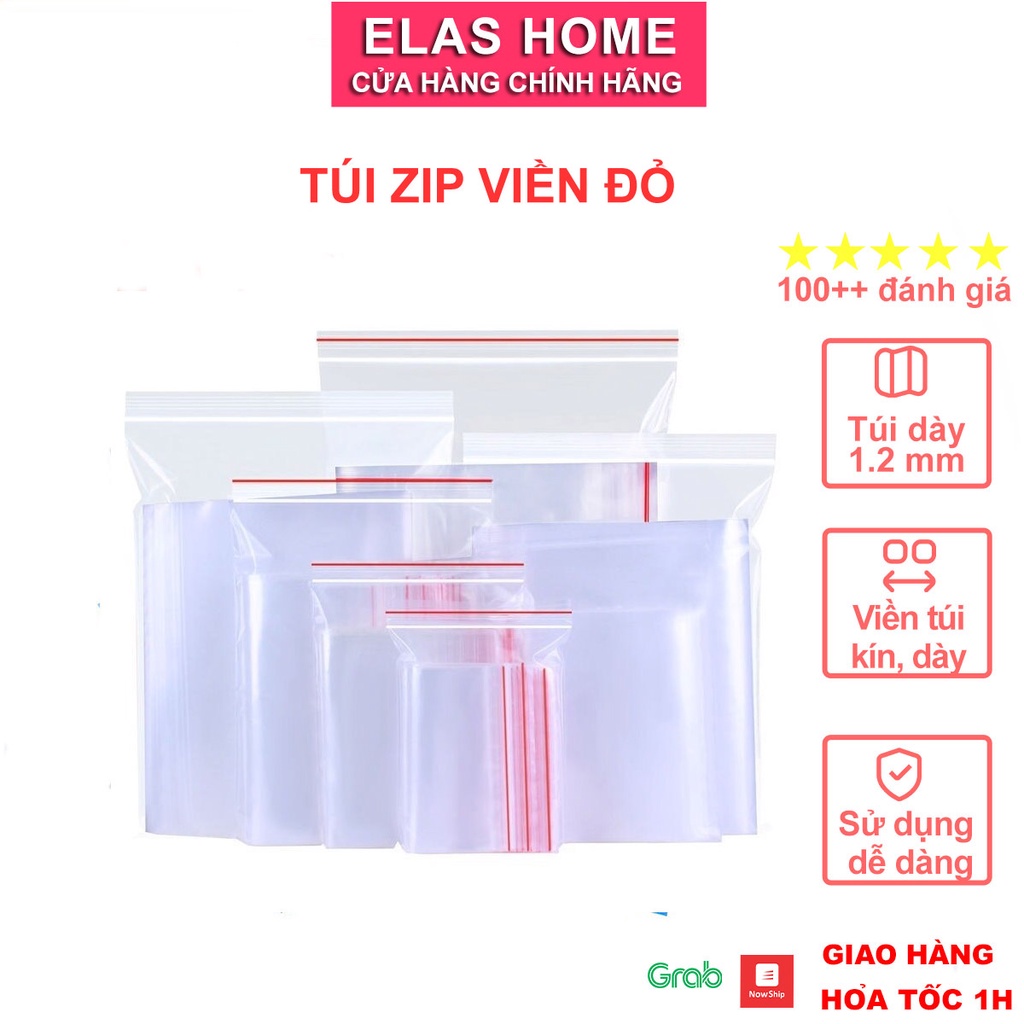 * VD: Túi zip 12x17 thì chiều ngang là 12cm và chiều dài là 17cm, viền đỏ riêng khoảng 1-1.5cm.