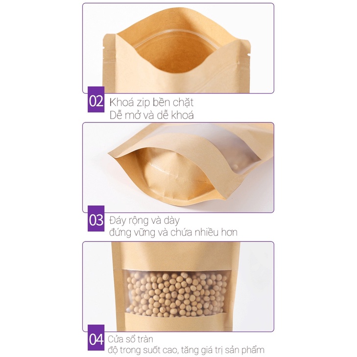 Giới thiệu Túi zipper giấy kraft đáy đứng có cửa sổ tràn đựng thực phẩm
