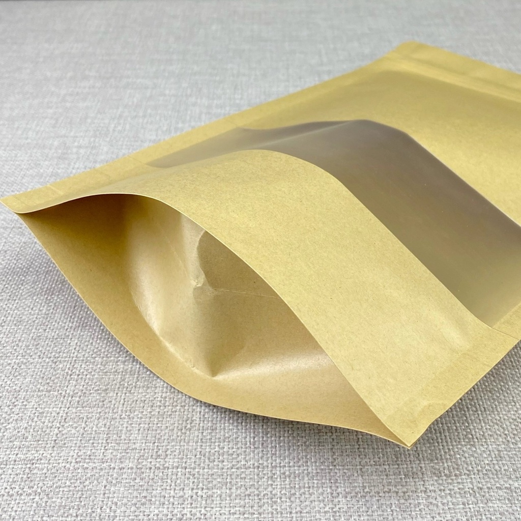 Túi zipper giấy kraft đáy đứng có cửa sổ tràn đựng thực phẩm