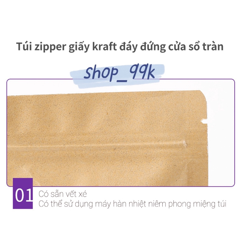 Túi zipper giấy kraft đáy đứng có cửa sổ tràn _ giấy VÀNGNGƯỜI ĐẸP VÌ LỤA -- SẢN PHẨM ĐẸP NHỜ "BAO BÌ"