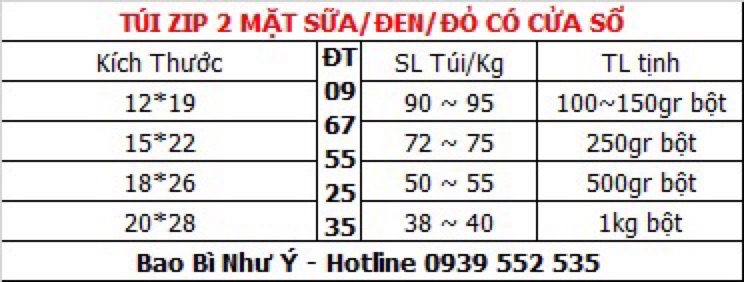 Giới thiệu { 1kg/size}Túi zipper sữa có cửa sổ tràn