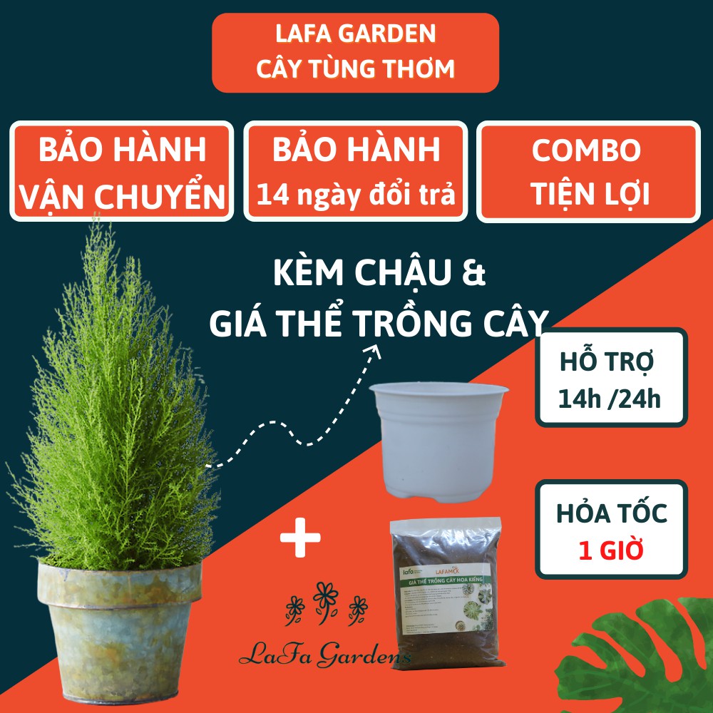 Tùng thơm Đà Lạt, cây tùng noel cao 40-60cm LAFA GARDEN kèm chậu nhựa 120x150mm và giá thể trồng cây LAFAMIX túi 5L✅ THÔNG TIN SẢN PHẨM