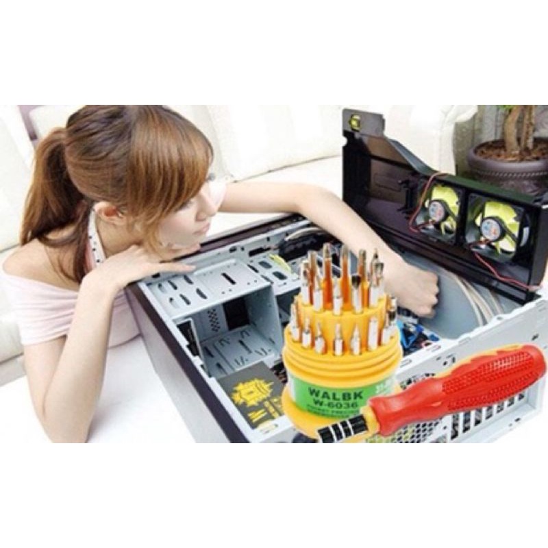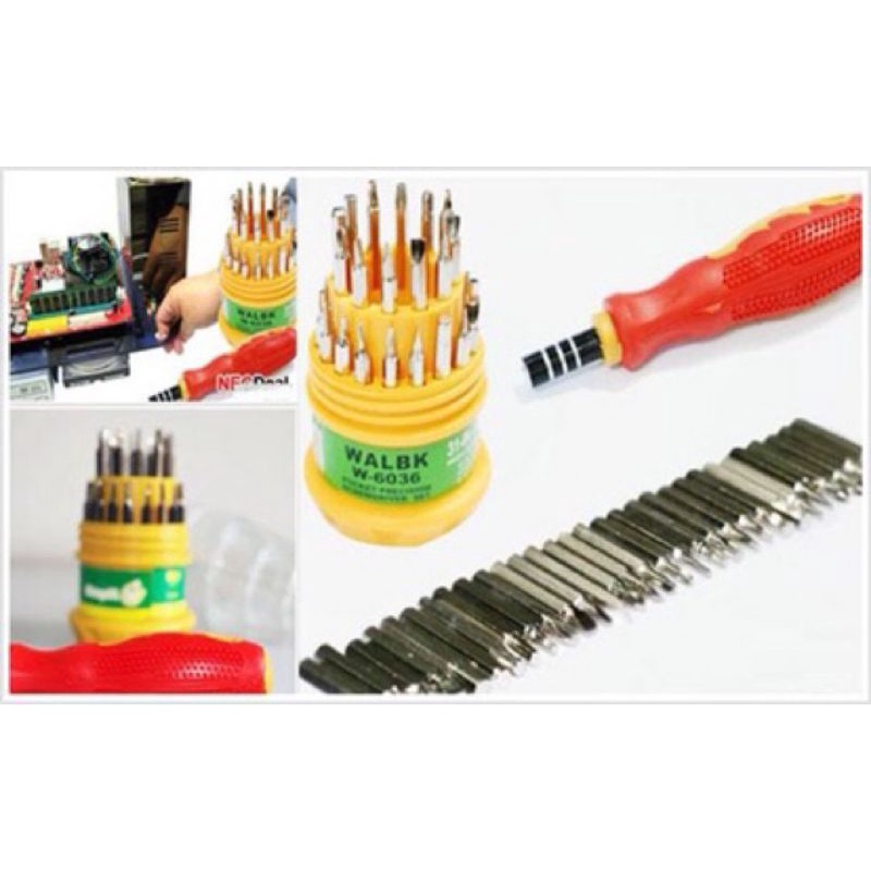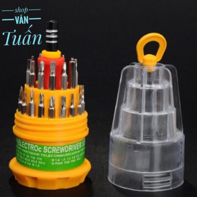 Tuốc nơ vít - một dụng cụ nhỏ nhưng đóng một vai trò cực kỳ quan trọng, một vật dụng không thể thiếu đối với mỗi gia đình. Còn gì bực mình hơn khi bạn đang muốn sửa chiếc xe đạp của mình, sửa một món đồ chơi cho bé yêu của bạn, muốn mở những dụng cụ điện tử trong gia đình bạn nhưng lại không tìm được đầu tuốc nơ vít thích hợp. Giải pháp tốt nhất của bạn lúc này là Bộ tua vít 31 mũi, gồm 31 đầu vít cỡ nhỏ dành cho sửa chữa đồ điện tử cỡ nhỏ như máy vi tính, laptop, điện thoại di động, và các đồ điện tử..… Đầu vít được xếp dạng tròn dễ sử dụng .