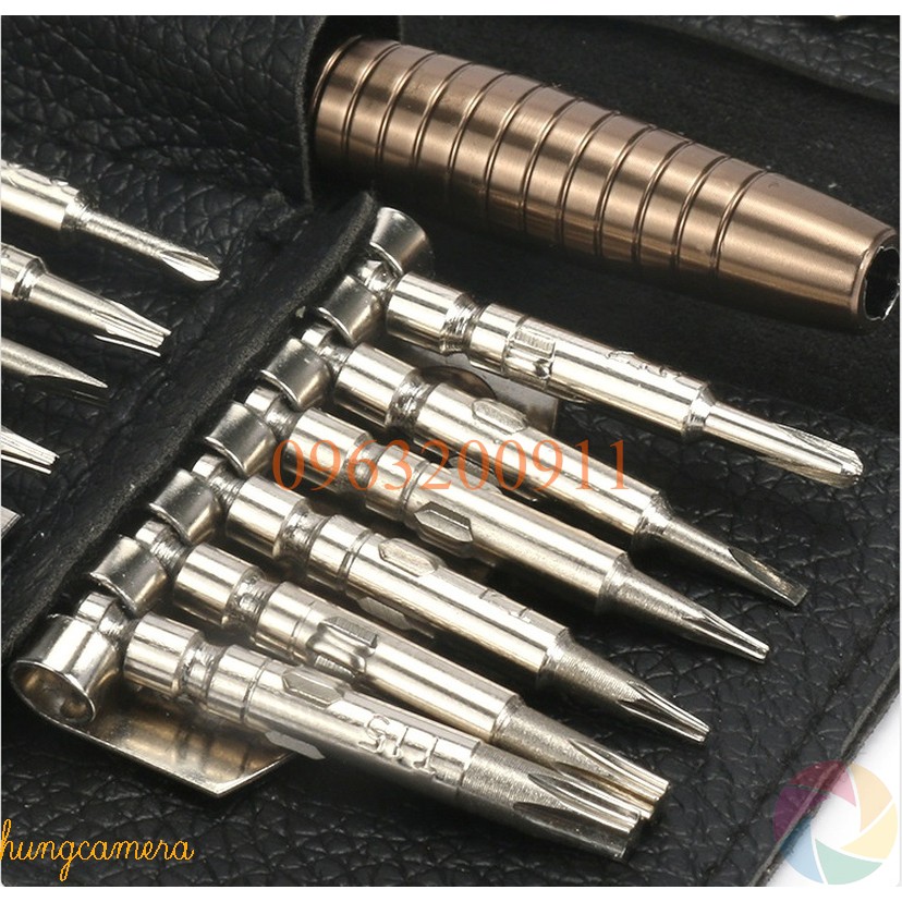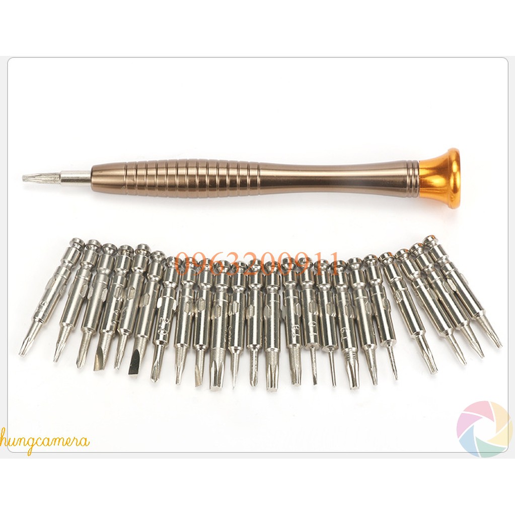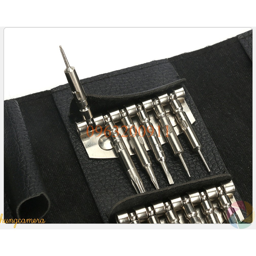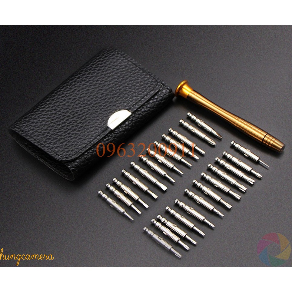 Bộ tuốc nơ vít, tua vít đa năng sửa chữa điện thoại 24 đầu kèm Bao Da/Hộp nhựaBao gồm 24 đầu vít thông dụng nhất cho sửa chữa điện thoại, các thiết bị điện tử nhỏ trong gia đình