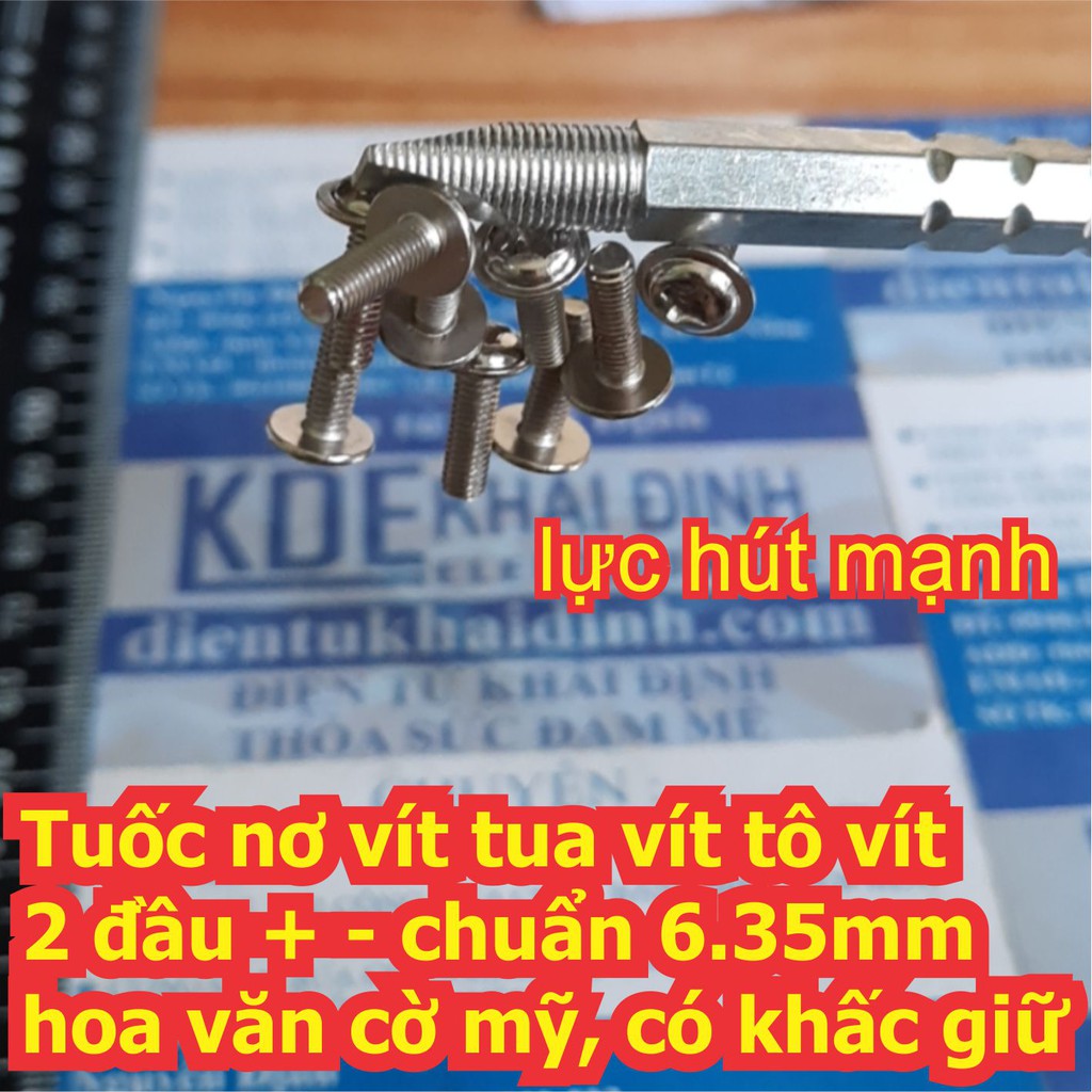 Máy tính & Laptop > Linh Kiện Máy Tính > Khác || Tuốc nơ vít tua vít tô vít 2 đầu + - chuẩn 6.35mm hoa văn cờ mỹ, có khấc giữ kde6680Còn hàng