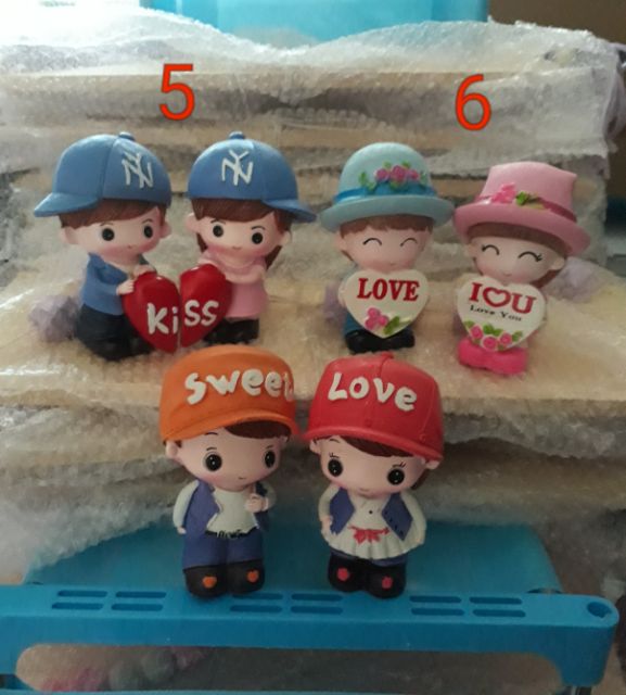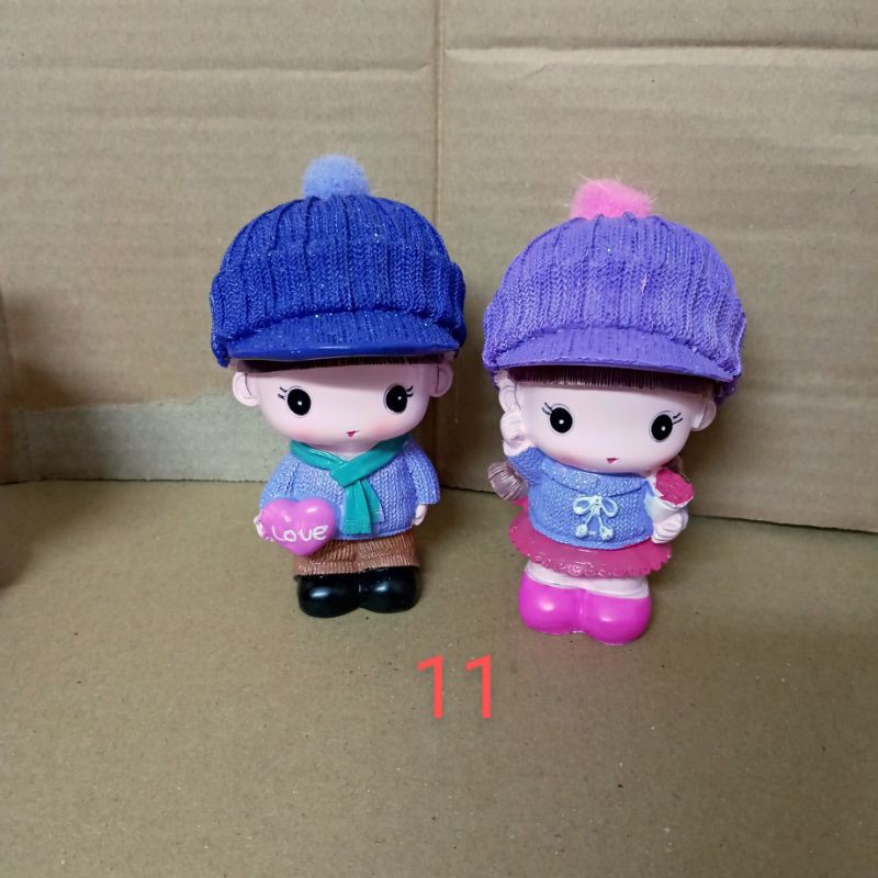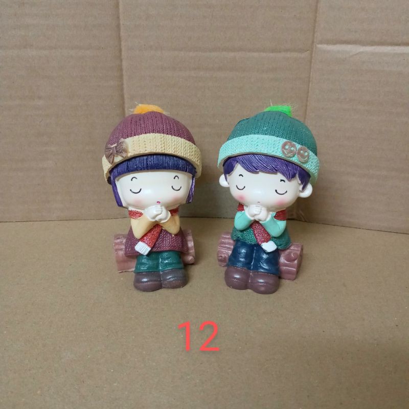 Bộ tượng cặp 2 bé đội mũ với trang phục đáng yêu dùng bày trang trí giá sách, tủ kệ, vách ngăn...Kích thước 1 bé: 5x8cm.