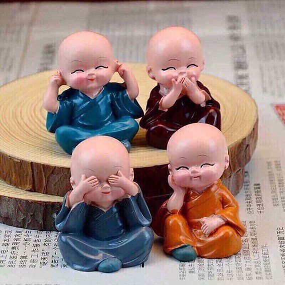 Bộ tượng 4 chú tiểu 4 không, mang lại bình yên, may mắn, để bàn làm việc, xe hơi, để trang trí,...bộ tượng ý nghĩaBộ tượng ngồi 4 không, không nhìn không nghe không nói không nghĩ