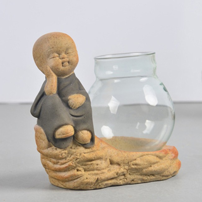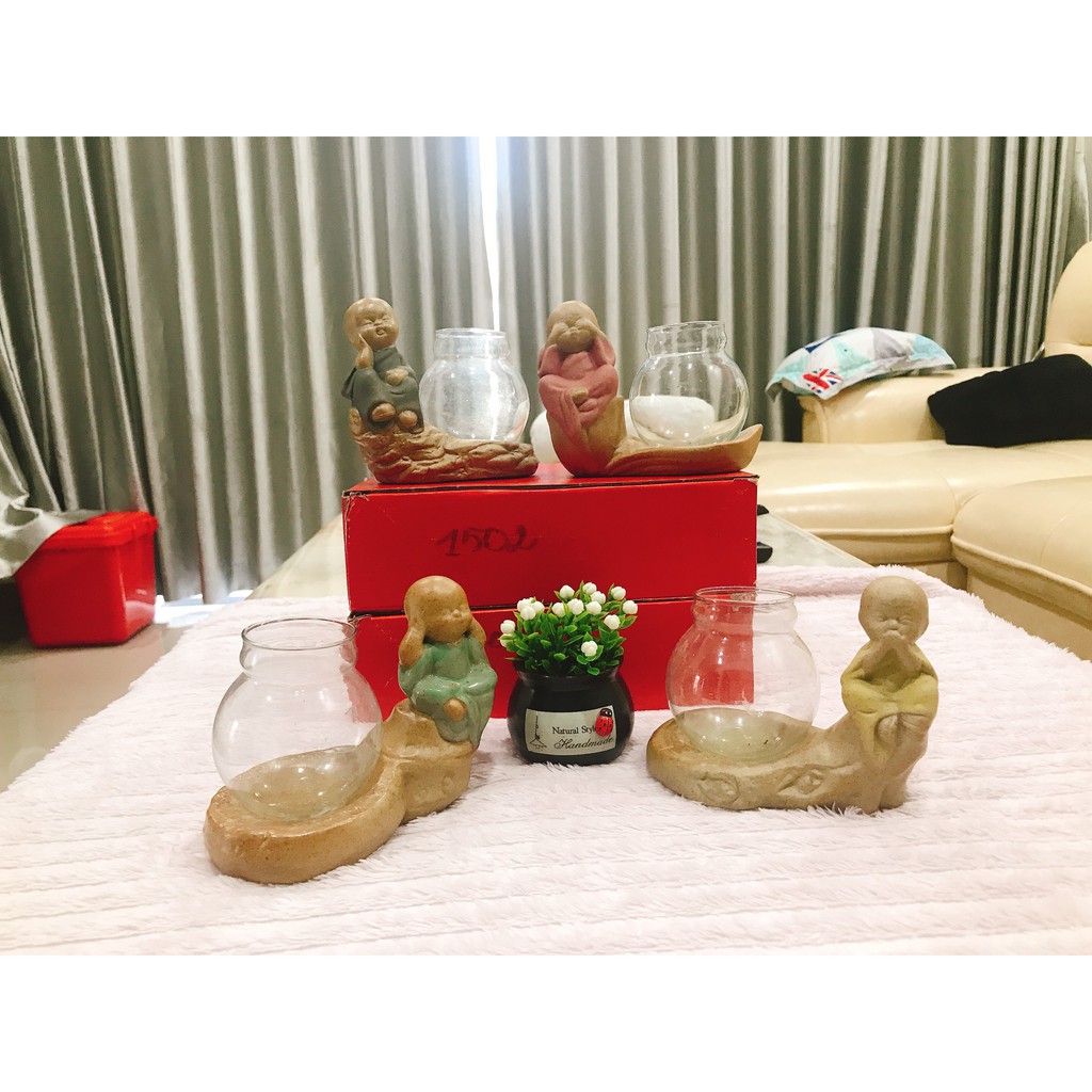 Nhà cửa & Đời sống > Trang trí nhà cửa > Bình trang trí || Tượng an lạc kèm lọ hoa phong thủy trồng cây để bànCòn hàng
