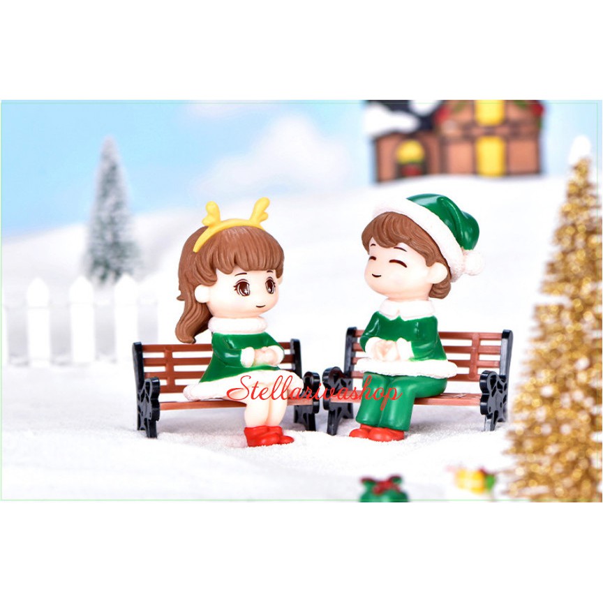 Tượng cặp đôi chú bé, cô bé mặc đồ giáng sinh, trang trí tiểu cảnh noel, terrariumSize 6.5*3.2cm