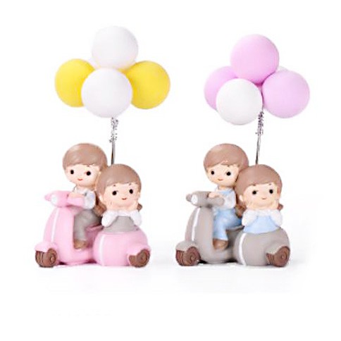 Tượng Cặp đôi ngồi xe Vespa và bóng bay trang trí tiểu cảnh nông thôn, terrarium/ mô hình trang tríSize 5.5 * 12.5 cm
