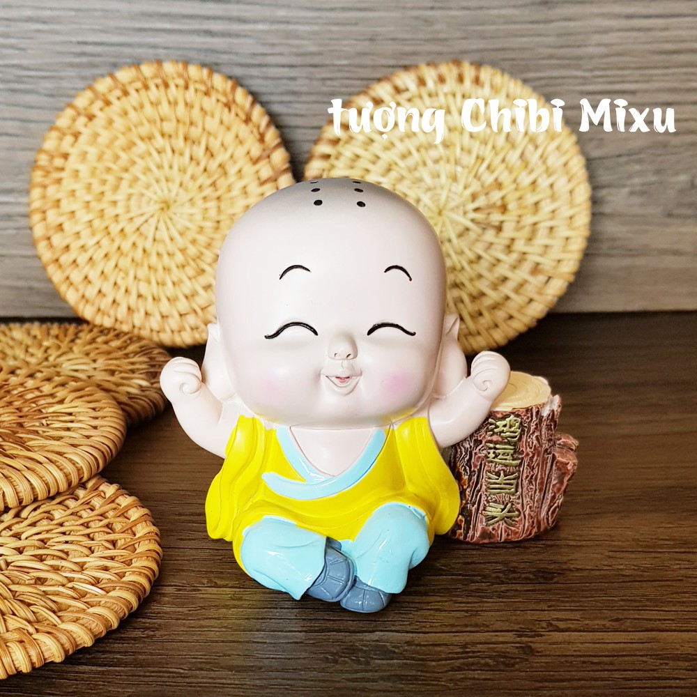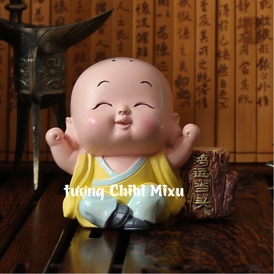 🌺Tượng chibi chú tiểu may mắn🌺- Chất liệu: Nhựa thông đặc ruột