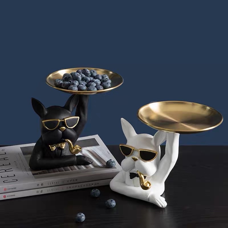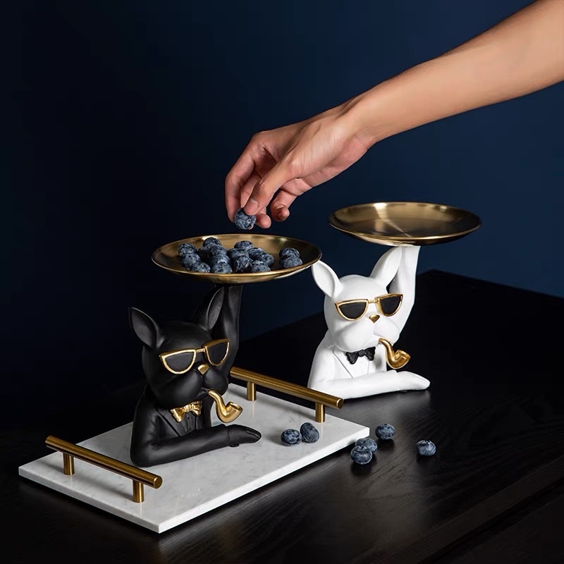 Nhà cửa & Đời sống > Nội thất > Kệ & Giá || Tượng chó Bull kèm khay để đồ trang trí tết phong cách Aristocratic quý tộc 2022 - may.decorCòn hàng