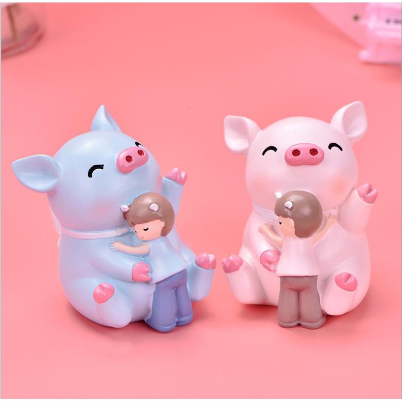 Tượng Chú heo ôm bé trai trang trí tiểu cảnh nông thôn, terrarium/ mô hình trang trí