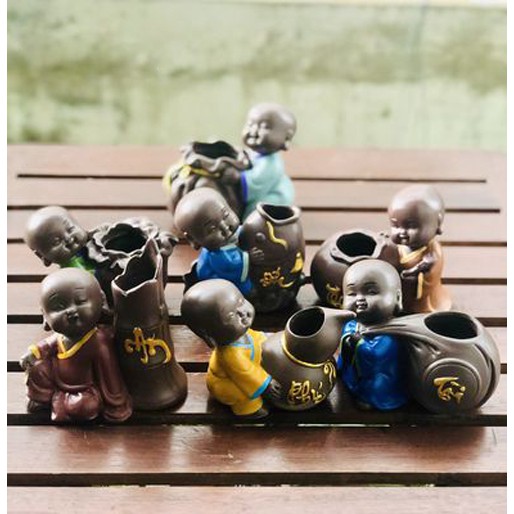 *LƯU Ý: Bộ sản phẩm không bao gồm cây cảnh. Kích thước và kiểu dáng tượng y như hình, màu sắc (áo chú Tiểu) được shop chọn ngẫu nhiên khi khách đặt hàng (có nhiều màu áo chú Tiểu cho mỗi mẫu chữ)