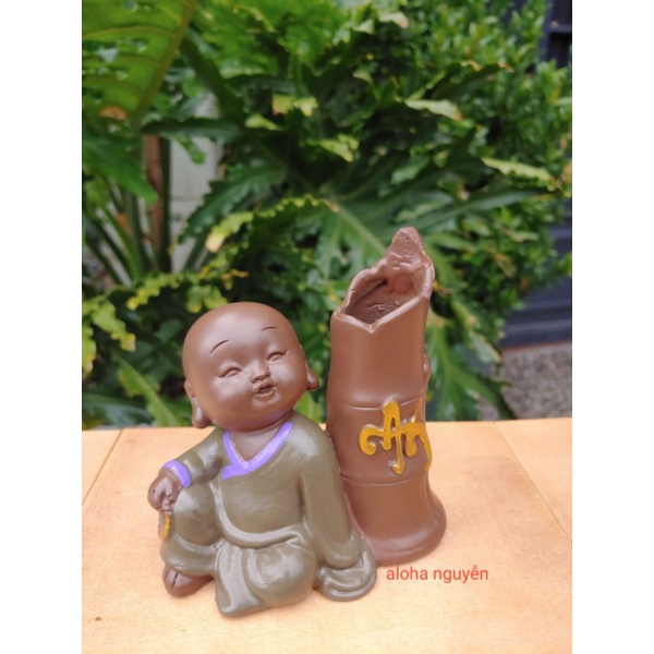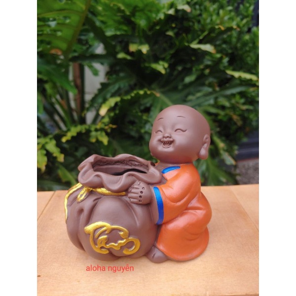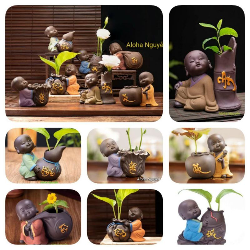 Chậu trồng cây để bàn hình chú tiểu dùng để trồng sen đá và các cây nhỏ. mini_ Kích thước tầm 10cm x 11cm.tuỳ dáng tượng lớn nhỏ.