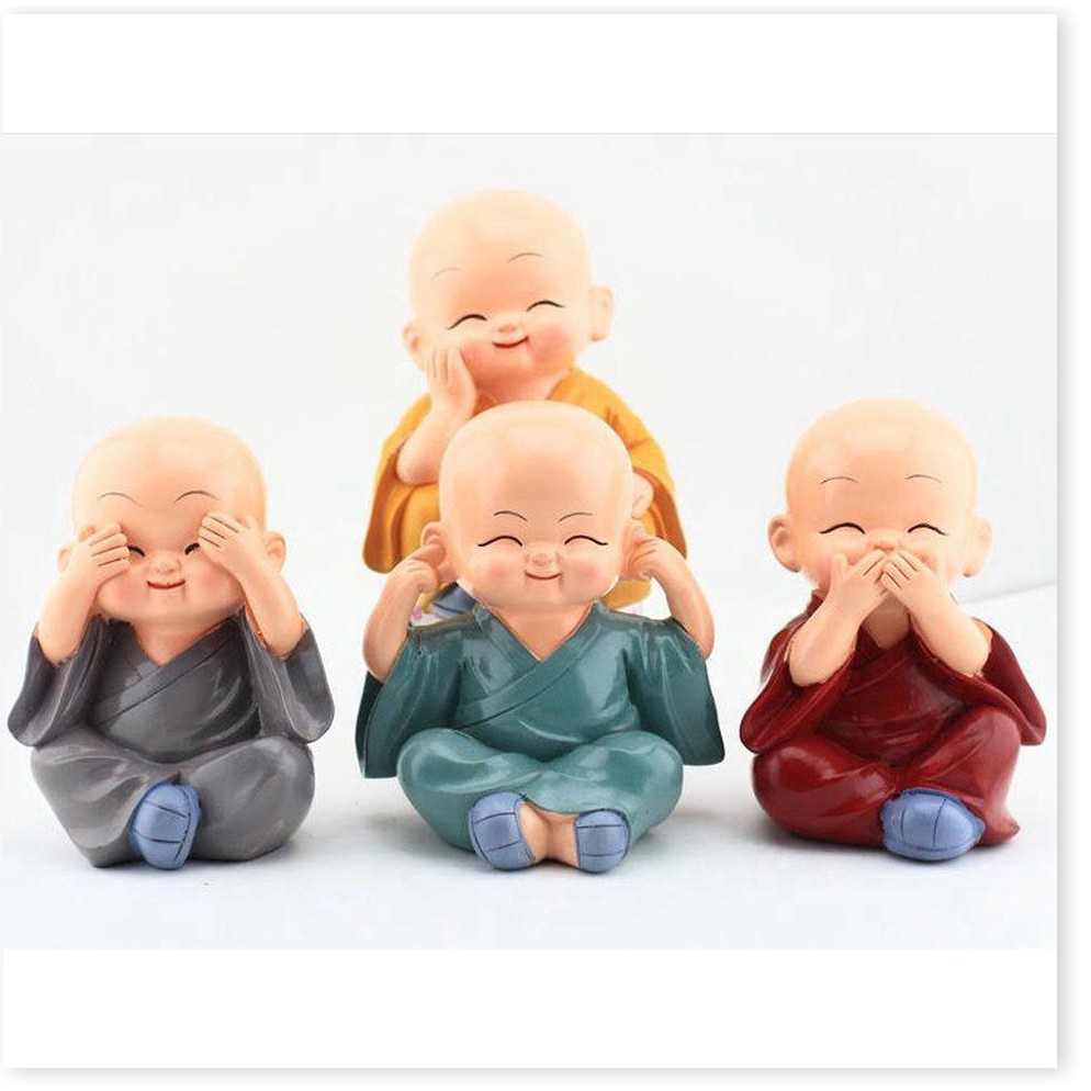 Tượng Chú Tiểu GIGAHOME Combo 4 Tượng Hòa Thượng Trang Trí Xe Hơi, Bàn Làm Việc, Tứ Không 3437