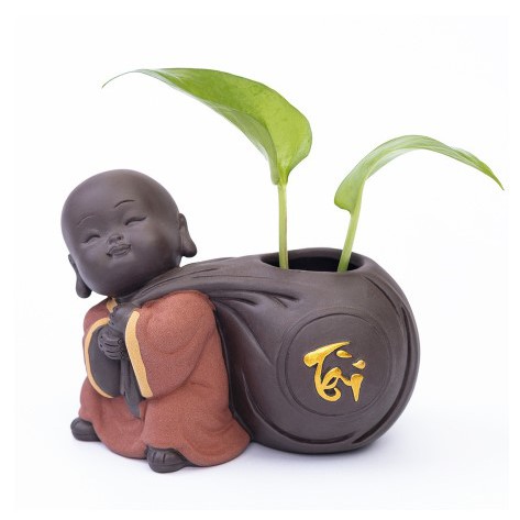 Giới thiệu Tượng chú tiểu kéo túi tiền chữ TÀI [ Màu ngẫu nhiên ] - Trồng cây, cắm hoa trang trí