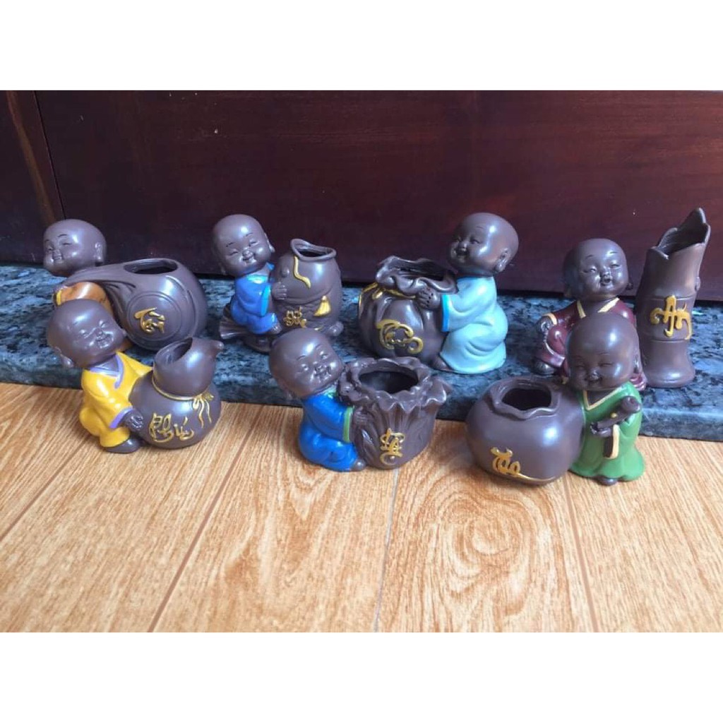 *LƯU Ý: Bộ sản phẩm không bao gồm cây cảnh. Kích thước và kiểu dáng tượng y như hình, màu sắc (áo chú Tiểu) được shop chọn ngẫu nhiên khi khách đặt hàng (có nhiều màu áo chú Tiểu cho mỗi mẫu chữ)