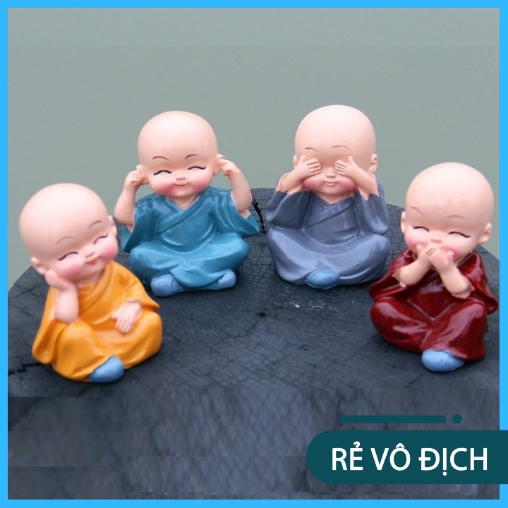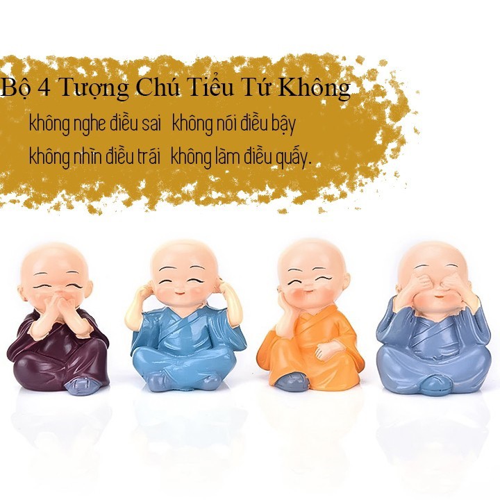 Bộ Tượng Chú Tiểu Tứ Không Cầu An, Không Nghe, Không Thấy, Không Nói, Không Làm Điều Xấu - Phật Phong Thủy Trang Trí Bàn Làm Việc, Xe Hơi✅Chất liệu - Quy cách sản phẩm