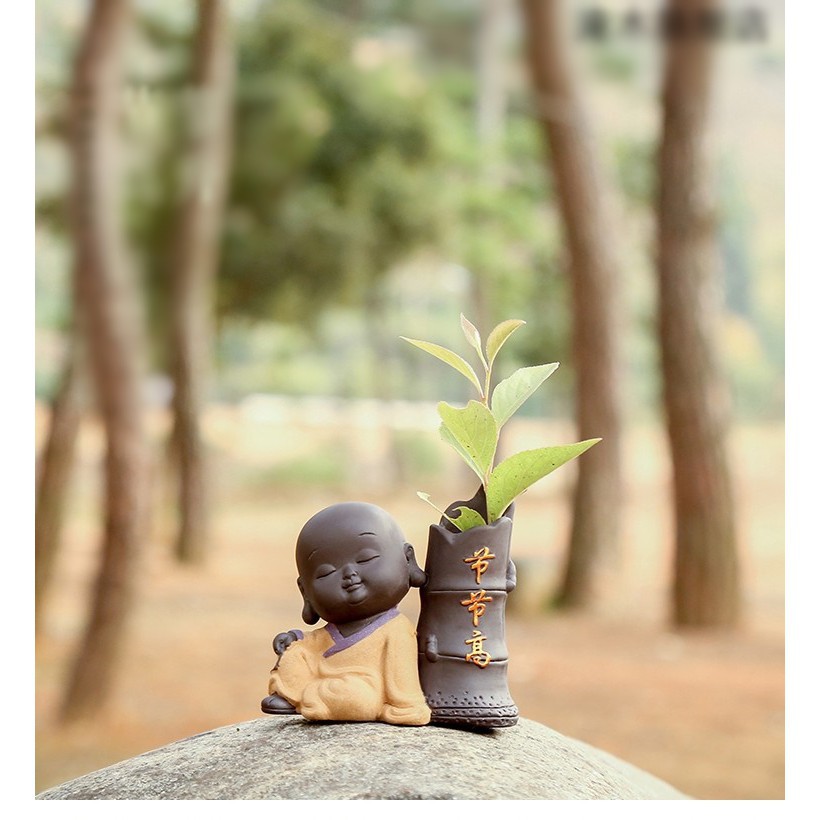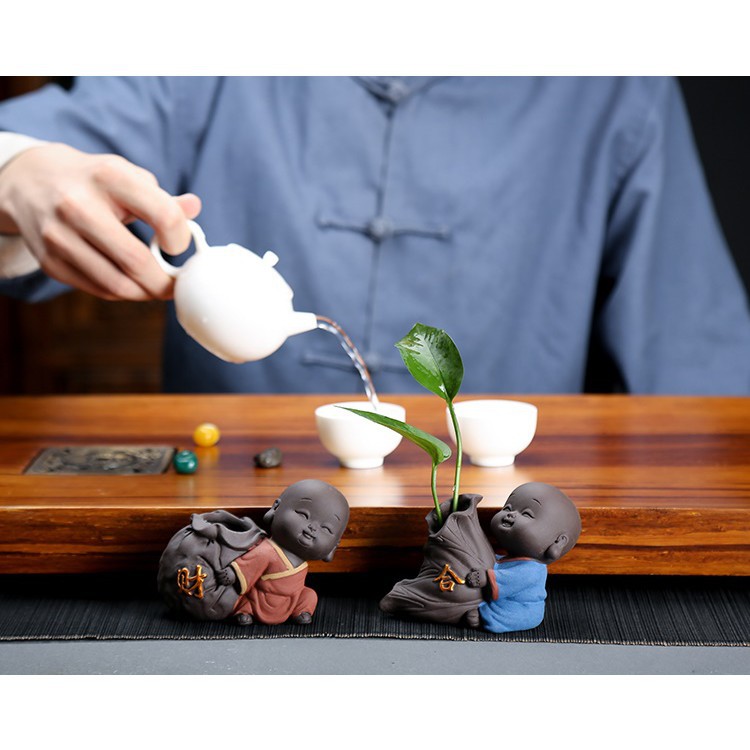 Bộ Tượng Chú Tiểu Và Chậu Trồng Cây Cầu Phúc 03Tượng gốm với các chú tiểu vui tươi , có thể trang trí làm chậu hoa hay set tiểu cảnh rất dễ thương và đáng yêu. Chất liệu gốm cát đẹp.