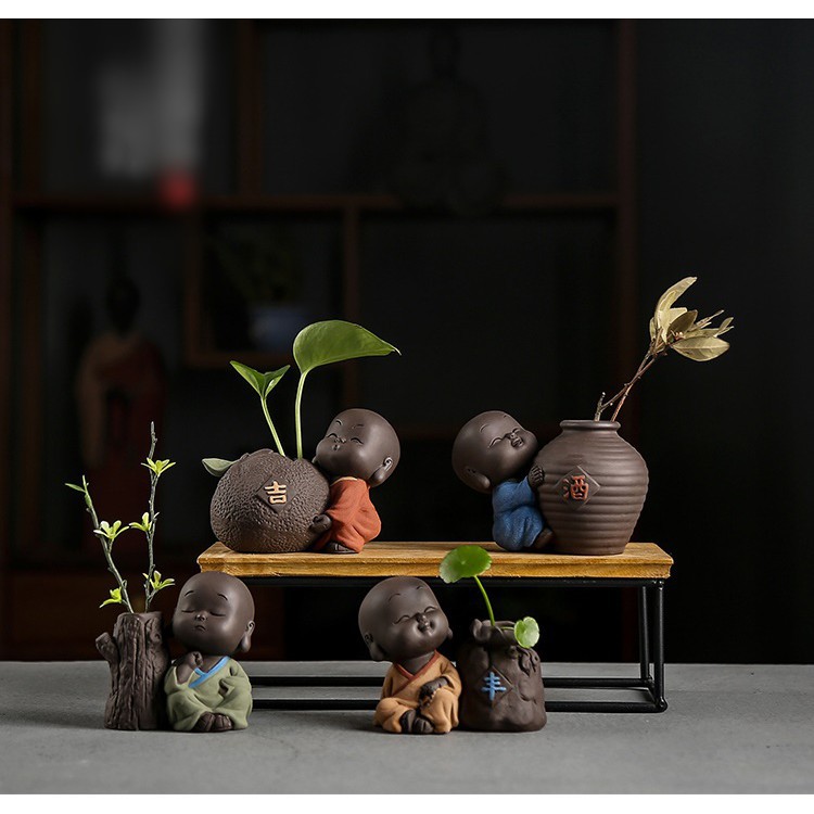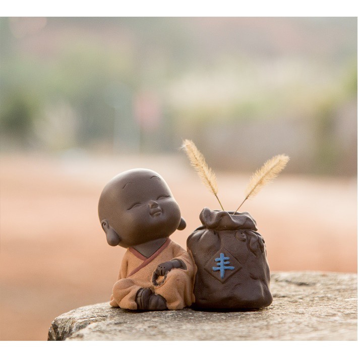 Bộ Tượng Chú Tiểu Và Chậu Trồng Cây Cầu Phúc 02Chất liệu : gốm