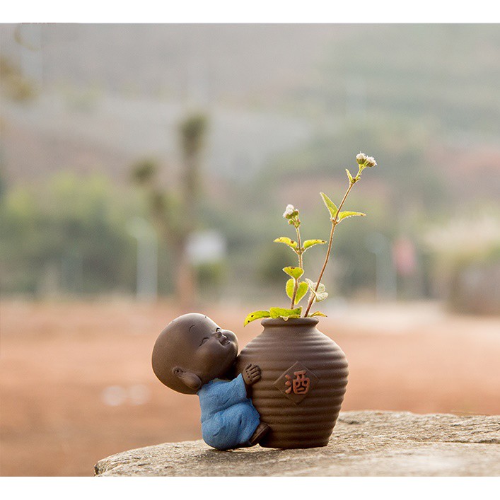 Bộ Tượng Chú Tiểu Và Chậu Trồng Cây Cầu Phúc 02Chất liệu : gốm