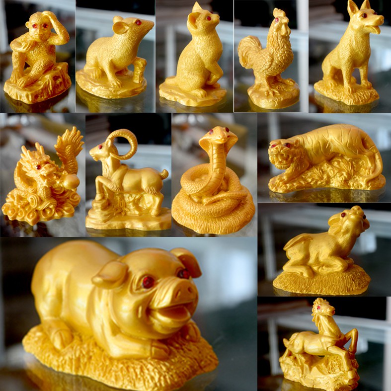 Giới thiệu Một tượng con giáp sơn nhũ vàng-Trọn bộ đủ 12 con giáp