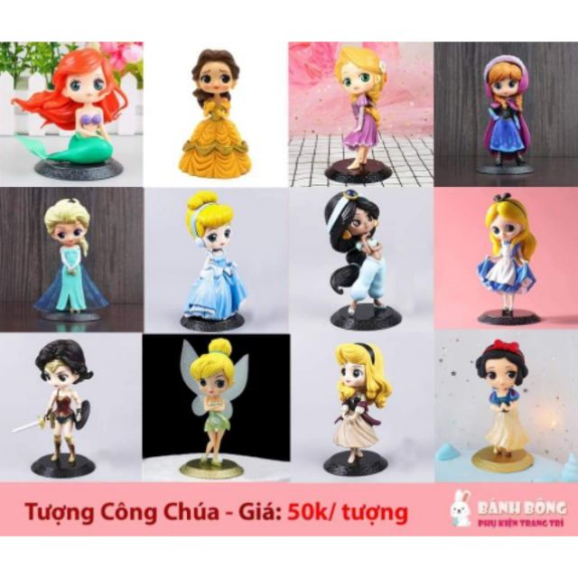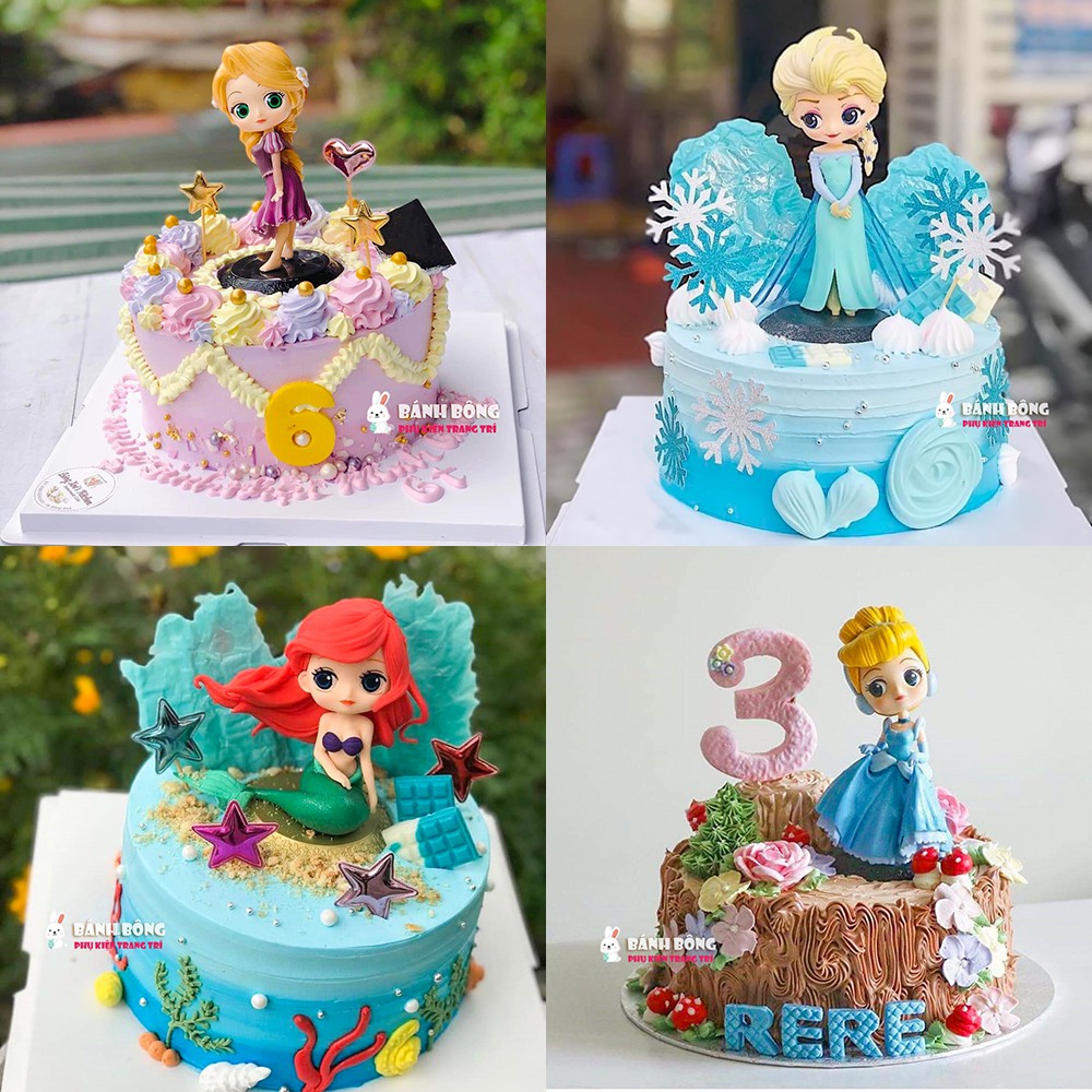 Tượng Công Chúa Búp Bê Trang Trí Bánh Kem Nhựa Đặc Nàng Tiên Cá Elsa Anna Belle Lọ Lem Alice Bạch Tuyết Tóc Mây Jasmine