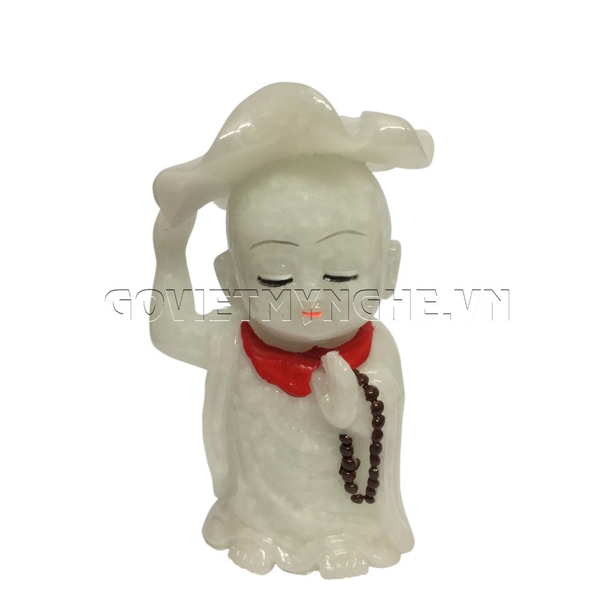 Tượng Đá Trang Trí Chú Tiểu Đội Lá Sen - Size Nhỏ - Đá Non NướcMÔ TẢ SẢN PHẨM: